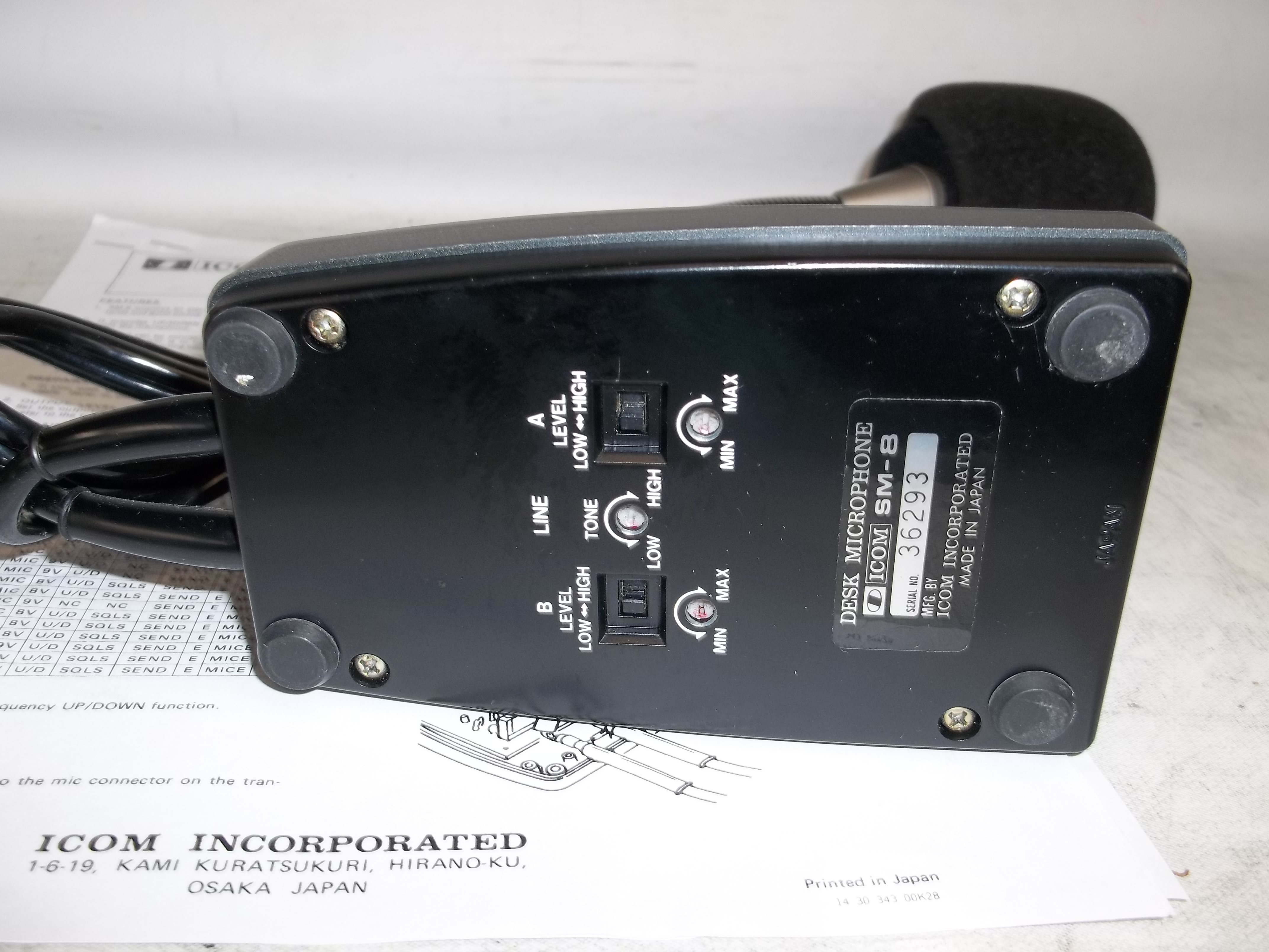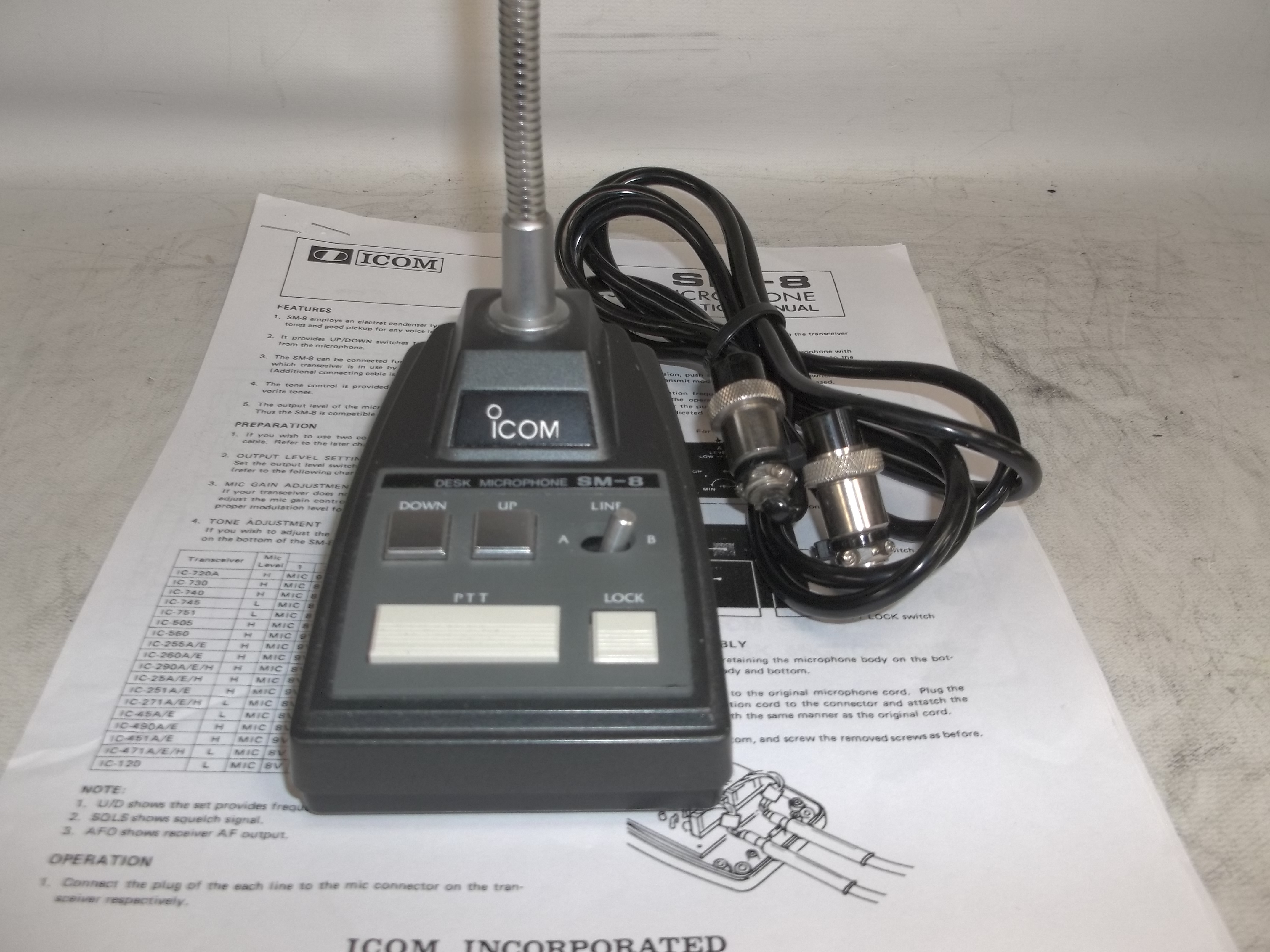 ICOM SM8 DESK MIC W/ 2 CABLES TESTED, GOOD SHAPE, WITH MANUAL