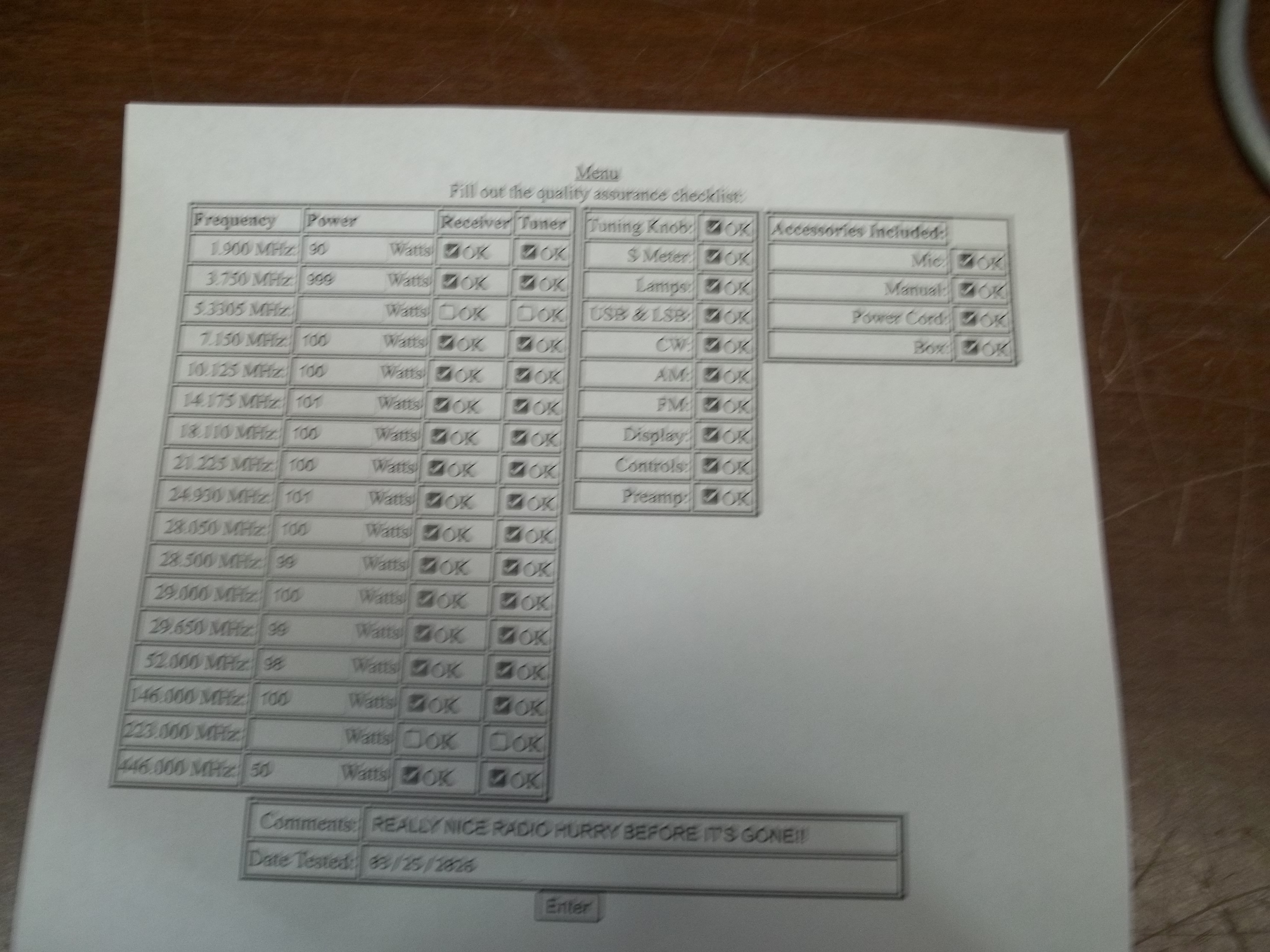 No check out sheet for this unit