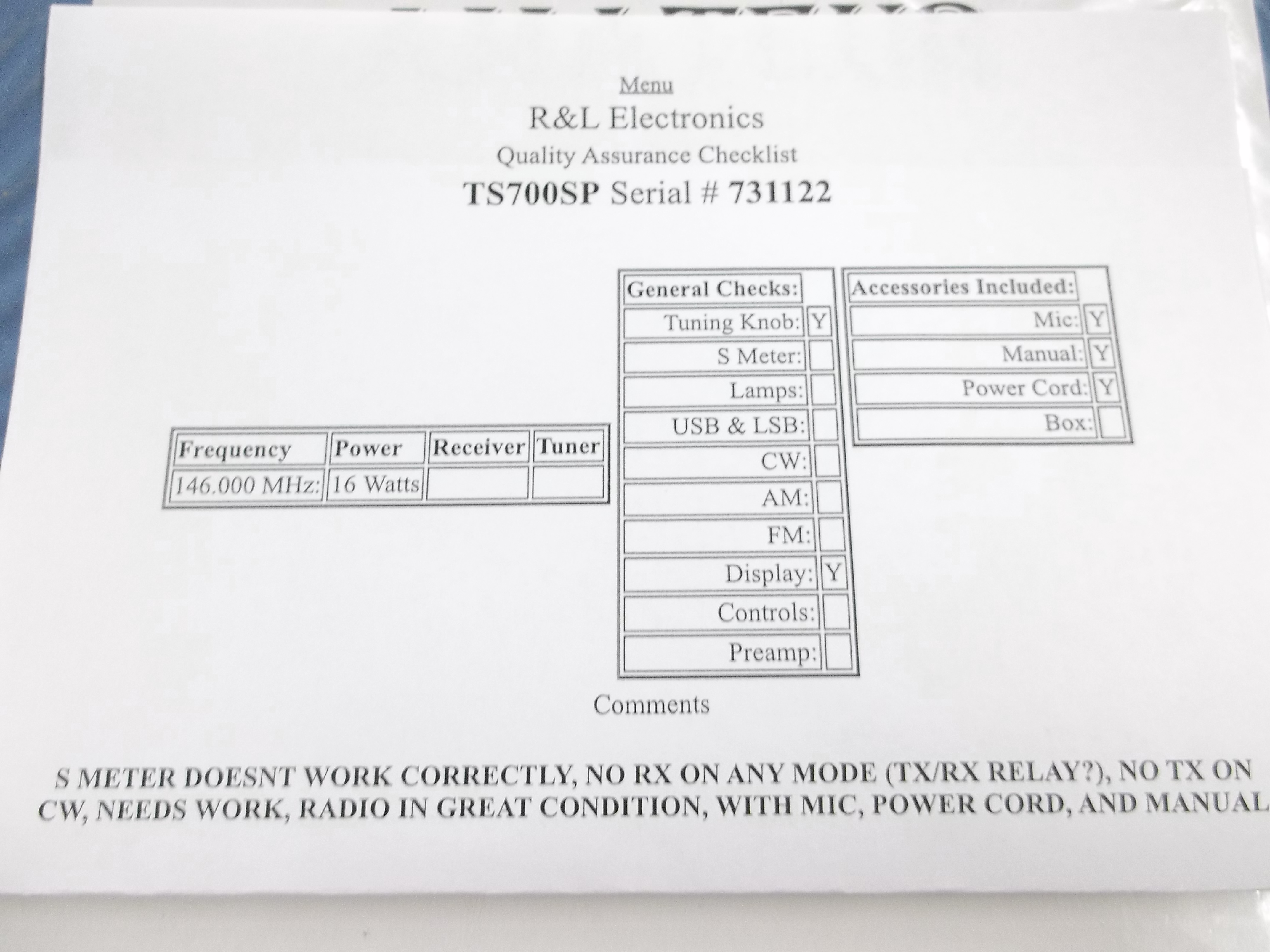 KENWOOD TS700SP 2M ALL MODE FOR PARTS OR REPAIR NO RX, BAD S METER, NO TX ON CW