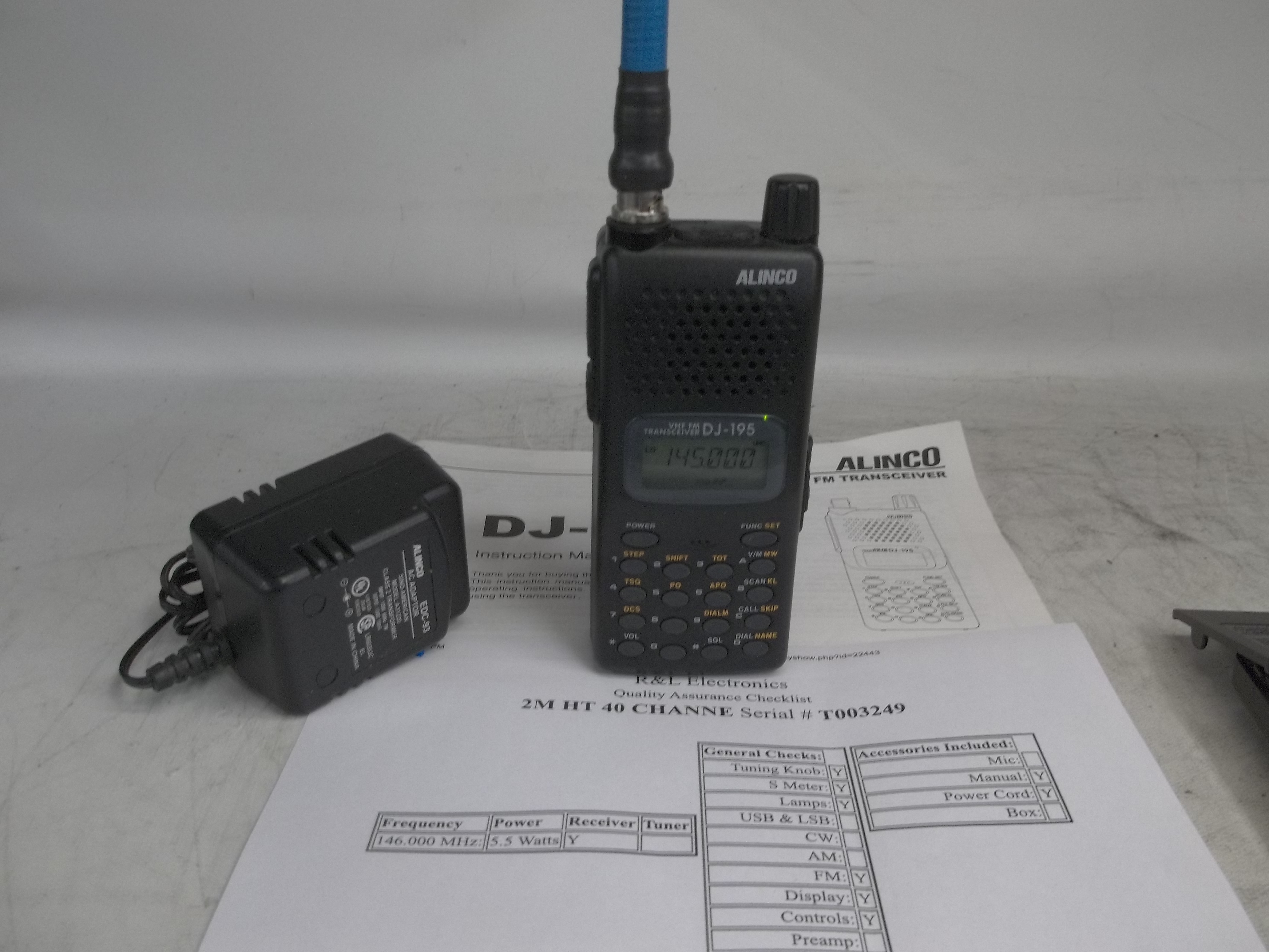 ALINCO 2M HT 40 CHANNE 2m HT 40 CHANNEL ALPHA-NUMERIC DISPLAY, TESTED, CHARGER, MANUAL, AFTERMARKET ANT